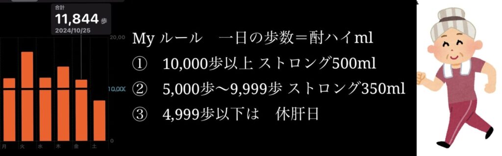 7,795歩 Myルールに基づき久々ストロング350ml で我慢